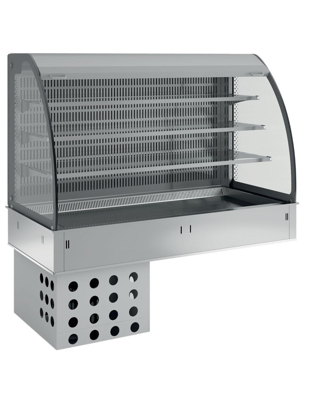 Mural top y vitrina sobre 3 niveles abierta (con cortina), refrigerados, ventilados, 3x GN 1/1